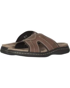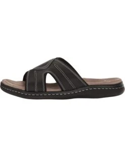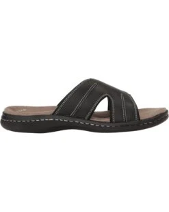 - Embrace the sunny outdoors in the handsomely rugged Dockers® Sunland slide sandals with tumbled faux-leather uppers and contrast stitch.