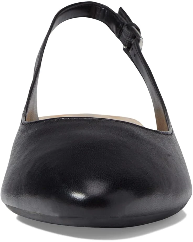Classic SlingBack Pump with wide and very stable 1 inch heel. The toe box is very pointed, very narrow and very painful for my wide foot. The wide width feels narrow because of the pointed toe box.