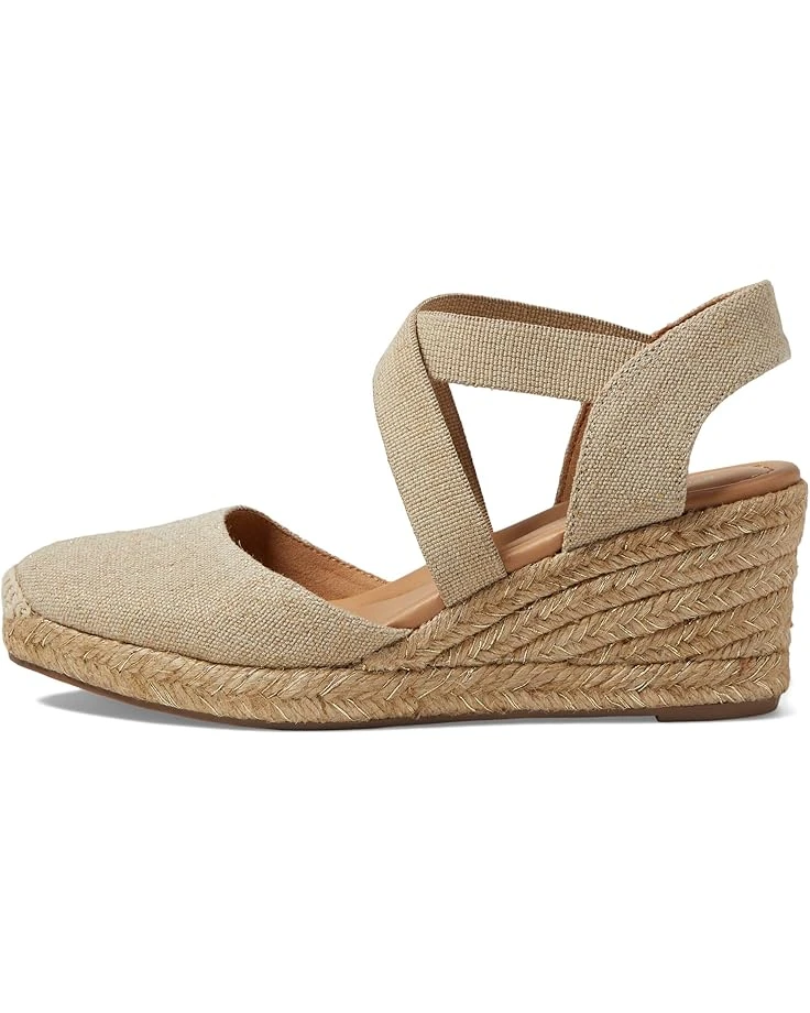 I had high hopes for these, but they’re going back. Fit and style are great — just as represented. I thought the color was linen; the description said gold and yes, they are flecked with gold all over the linen top and the jutey wedge. I’m not a glitter girl. A plain linen espadrille would have made me very happy; this gold-flecked model does not. Alas.